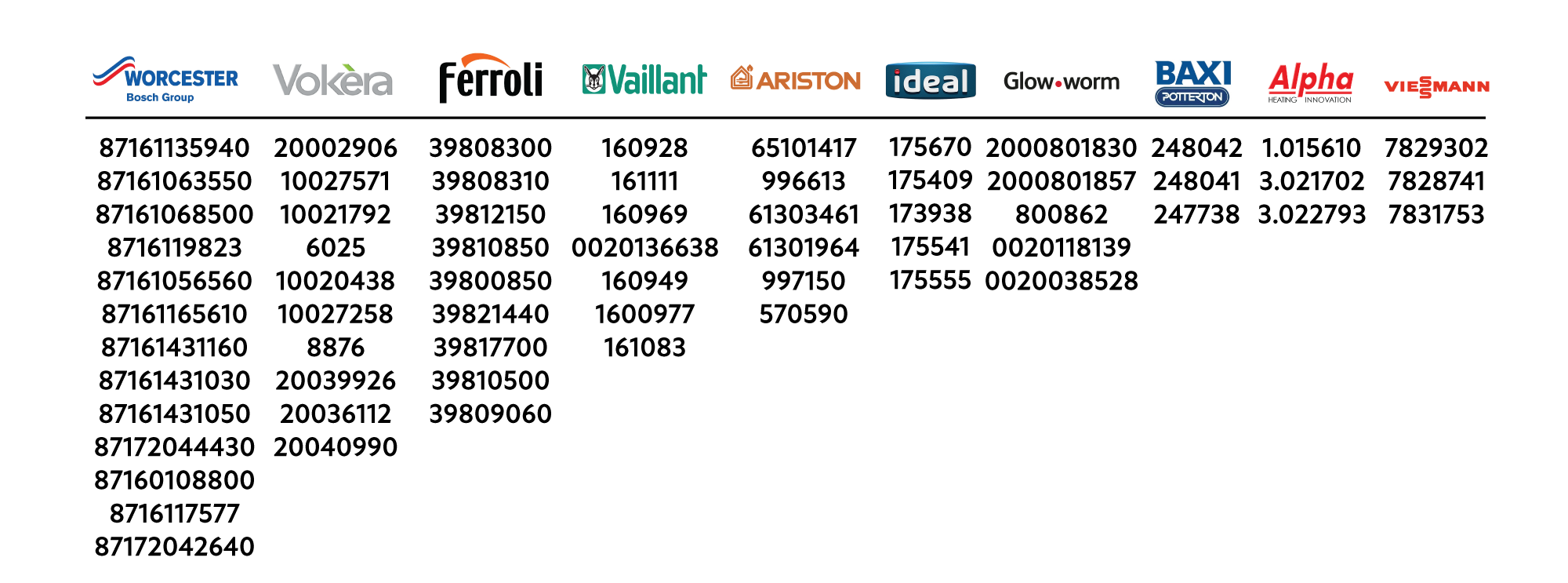 Due to our quality focused approach to manufacturing and our use of high end component materials, this circulator is resistant to condensation, corrosion, high pressure and high temperatures. It also comes with a 3 year guarantee and can be used as a head replacement for a large number of integrated circulators as well as 3 speed standalones and the UPS4 GO, see the table below for boiler OEM codes or use the Archergas® app on iOS or Android to search by model names or GC numbers: